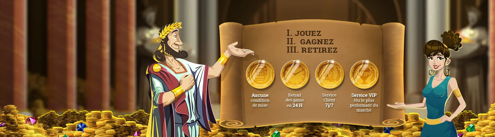 Avec plus de 10 ans sur le marché, notre site est un des plus anciens. L’avis des joueurs que nous avons reçus nous permet de connaître nos points forts. Nos promotions sont offertes sans conditions de mise, ce qui est un avantage considérable pour les joueurs de notre plateforme qui peuvent rapidement retirer les gains accumulés lors d’une partie où un bonus est utilisé.
